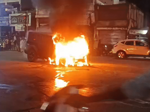छत्तीसगढ़ के बिलासपुर में एक चलती थार कार में अचानक आग लग गई। थार में सवार दो लोगों ने समय…