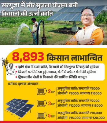 सरगुजा के 8893 किसानों को मिला लाभ बहुफसली खेती से रोजगार में हुई वृद्धि छत्तीसगढ़ शासन की सौर सुजला योजना…